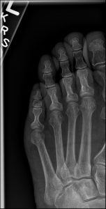 This patient has suffered a potential Fracture of the Proximal Phalanx of the Fourth Toe, a specific version of the common “Bedroom Fracture.”