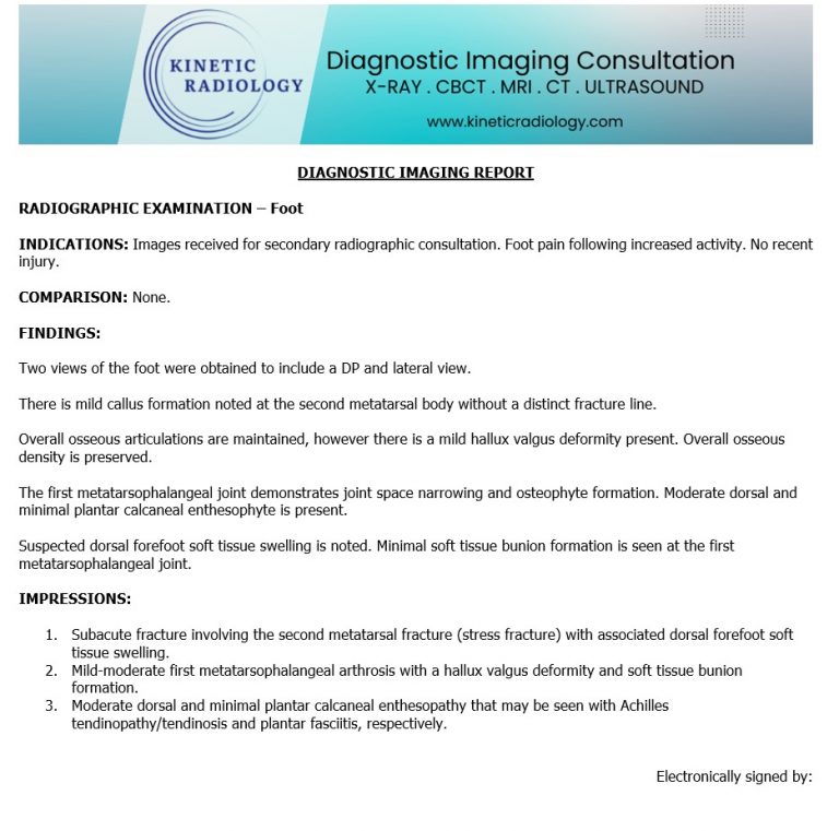 If the X-ray clearly shows a “gray cortex” sign or exuberant callus, an MRI may not be required for the diagnosis. However, Diagnostic Imaging Consultants often recommend MRI to assess the extent of bone marrow edema (BME) or to differentiate the pain from a Morton’s neuroma or plantar plate tear, which can coexist with bone stress.